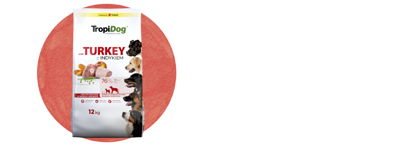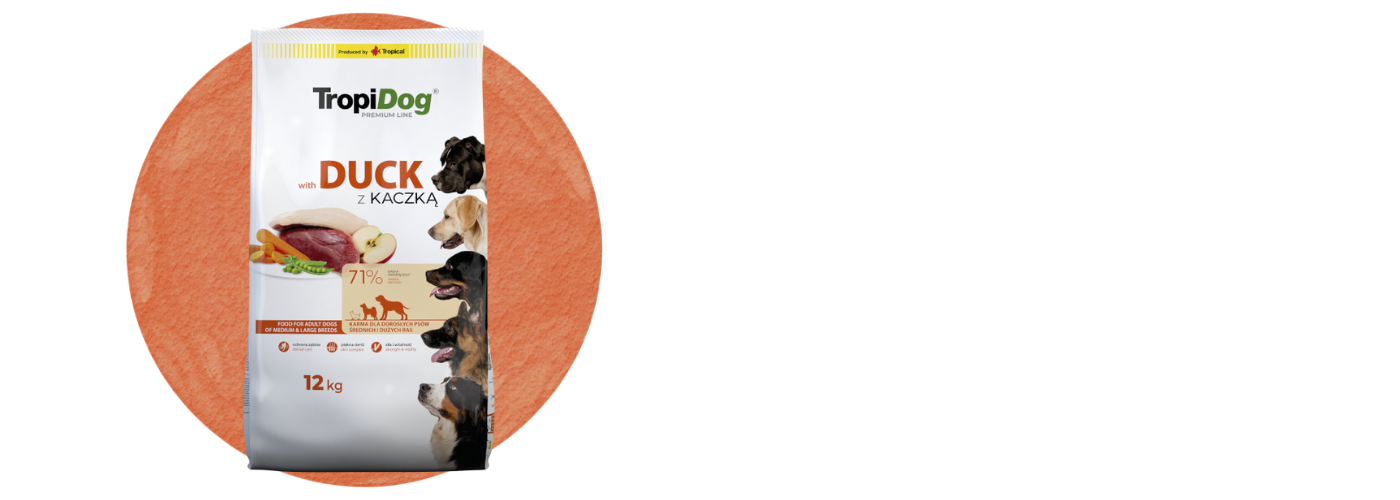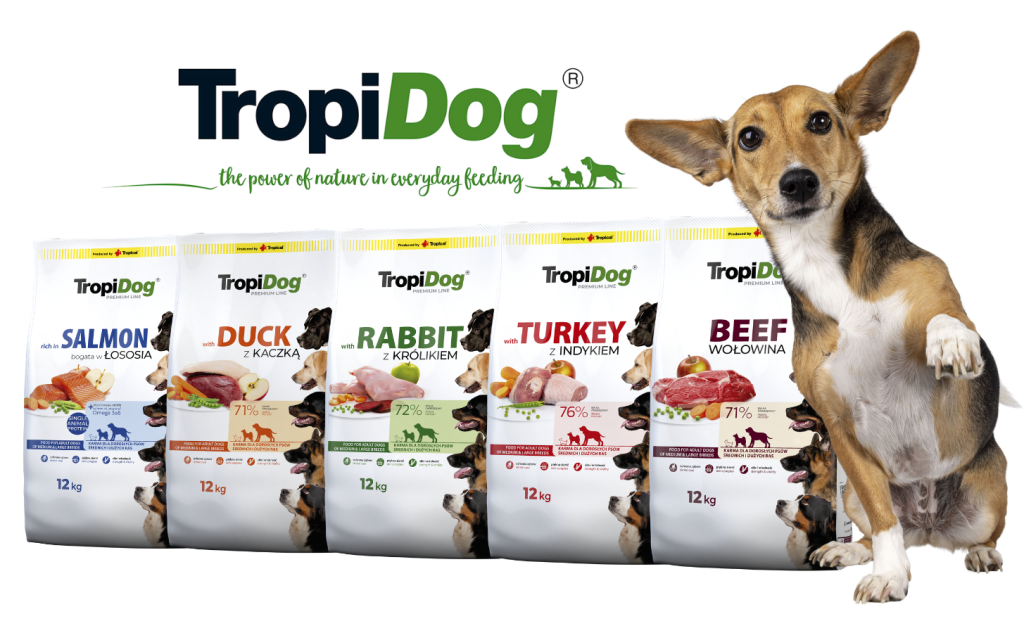 Hrana TropiDog je briketirana hrana za pse, proizvedena na Poljskem, s parametri, ki jih redko najdemo v zoologiji (polna ekstrudirana oblika).